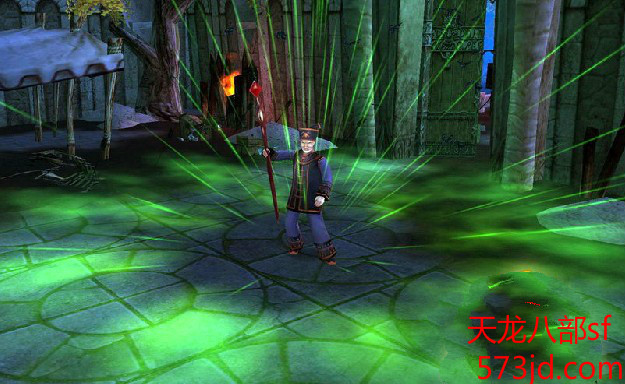 是冰群——“寒冰刺骨”,这个技能是李秋水随机在玩家脚下施放较小范围冰块,有一定的持续和一定的冷却时间。冰块每秒对半径5米范围内玩家造成一次冰伤害,并减速。战斗中一定要留意地面上的冰群,那就是李秋水的冰群陷阱,冰群伤害颇高,玩家应尽量躲开,如果不小心踩中陷阱,不要跑,直接用轻功飞出李秋水的陷阱伤害范围即可。